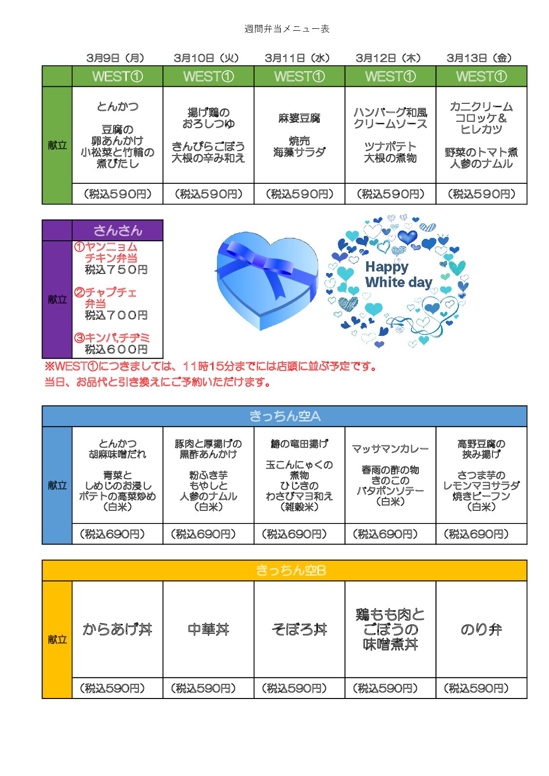 週間弁当メニュー表